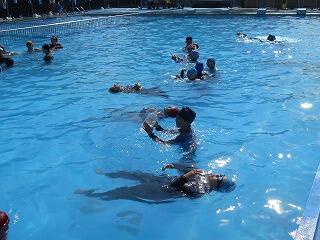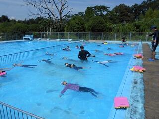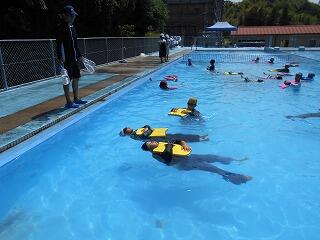 2時間目は、1・2年生です。1年生は初めての着衣泳でしたが、先生の話をしっかり聞いて上手に浮かんでいました。
