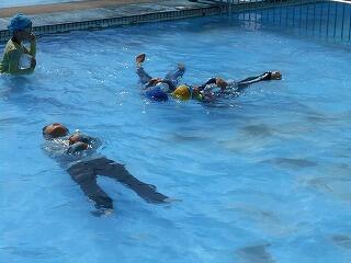 3時間目の3・4年生も、始めは洋服の重さに戸惑っていましたが、上手に浮けるようになりました。