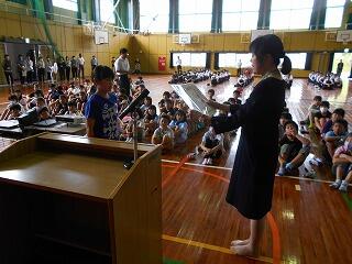 終業式では、まず、1学期頑張ったことを3人の子どもたちが発表をしてくれました。