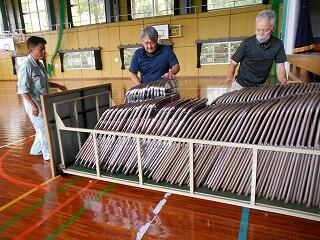 技術員の先生と事務の先生が取り壊しになる体育館から椅子を運んできてくださいました。