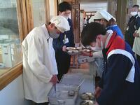 2月に入り、まだまだ寒さの残る日が続いていますが、体を温めてくれる給食が登場しました。今日の献立は、いわしのみぞれ煮と魚そうめん汁です。やわらかく煮たいわしに、さっぱりとした大根おろしがよく合い、ごはんが進む一品でした。魚そうめん汁は、だしのうま味が感じられるやさしい味わいで、心も体もほっと温まります寒い季節にぴったりの和食献立で、栄養もしっかりとれる給食でした