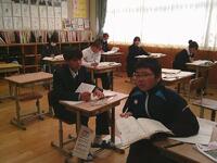 放課後、3年生は県立高等学校推薦入試の事前指導が行われました。入試に向けての注意点や当日の過ごし方を確認し、本番を前に気持ちを整える時間となりました帰りの会で他の学年でも、3年生が入試を控えていることに触れ、学校全体で入試に向かう3年生を応援し、落ち着いた雰囲気を大切にしていこうという確認がありました