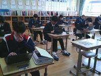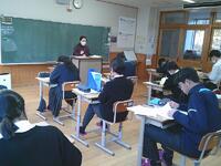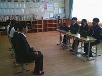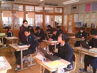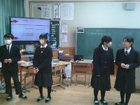 明日の県立高校推薦入試に向けて、学級で面接練習を行いましたタブレットを活用し、面接の様子を記録し、その映像を見ながら振り返りを行いました。自分の話し方や姿勢、表情などを客観的に見ることで、これまで気づかなかった点に自分自身で気づく姿が見られました。全体で共有する中でも、互いのよさや改善点を認め合い、前向きな雰囲気が広がっていました。本番を前に、落ち着いて自分と向き合う大切な時間となりました