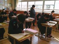 明日に県立高校推薦入試を控え、3年生はこれまで学習してきた内容を生かし、総合問題や応用問題に意欲的に取り組みました基礎を大切にしながら、少し難度の高い問題にも挑戦し、丁寧に考える姿が見られました。教室には、互いに刺激を受け合いながら集中して学習に向かう、落ち着いた雰囲気が広がっていました。これまで積み重ねてきた努力を信じ、明日は自分の力を発揮してくれることを願っています