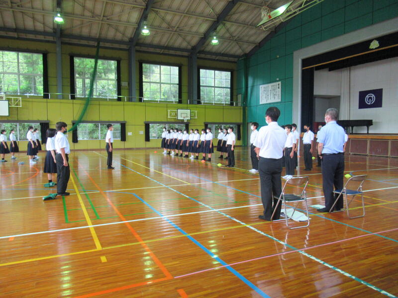 そのあとに校長先生が「1時間1時間の授業を大切にすること」「行事に対して協力して準備をすること」について全体に話をしました。話の最後には、中学校3年生に向けて「自分の進路は自分で決めること」について、確認と激励を行いました。