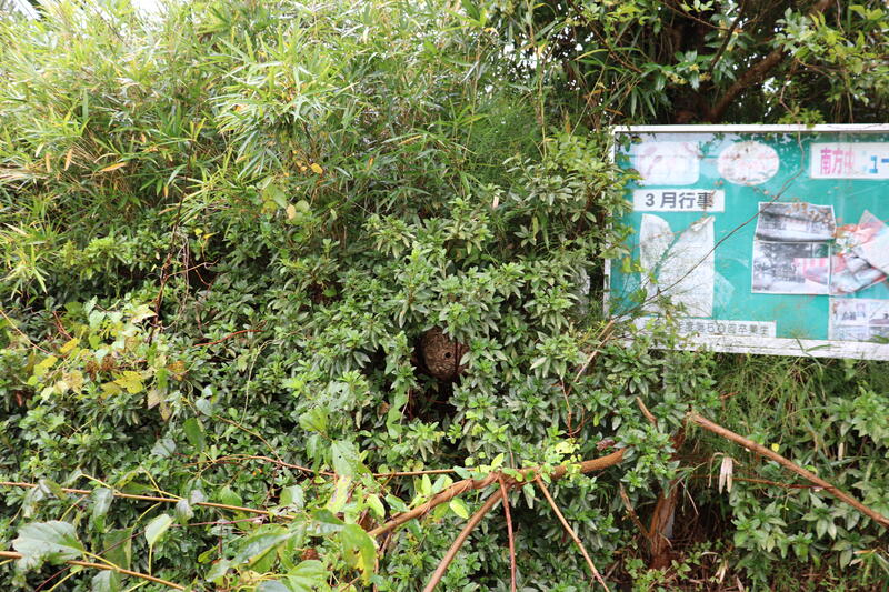 本日の朝、技術員の有馬さんが校内の樹木を剪定するために見回っていた際に、偶然スズメバチの巣を見つけてくれました。すぐに市教委に連絡をすると午後1時に業者の方が来てくださり駆除してくださいました。場所がテニスコートに近いところなので部活動の生徒や少年団の子供たちが刺される前に発見できてよかったと思っています。