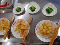 小学部6年生が、調理実習をしました。南方小学校栄養教諭の樋口先生の指導の下、ジャーマンポテトと青菜のおひたし作りに挑戦です。子どもたちは、この調理実習をとても楽しみにしていたようです。始めに、樋口先生から調理のポイントの説明を聞いて、調理に取りかかりました。グループでそれぞれの役割で作業をしながら協力して進めている姿が、とてもよい雰囲気でした。しばらくすると、家庭科室からジャーマンポテトのいい匂いがしてきて行ってみると、ジャーマンポテトと青菜のおひたしが上手に盛り付けされてあり、とてもおいしそうでした。子どもたち、なかなかの腕前です。