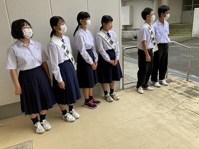 生徒会役員立候補者と推薦責任者は児童生徒の登校時間に合わせてあいさつ運動を行っています。おかげさまで、爽やかな気持ちで朝をスタートすることができています。生徒会役員選挙は今月29日に行われる予定です。