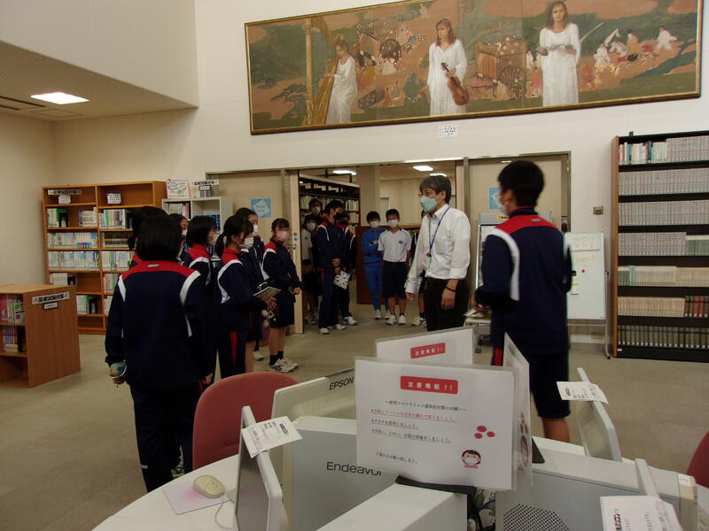 多くの生徒が海を見ながらお弁当を食べた後、午後は九州保健福祉大学に移動して体験学習を行いました。中学校と高校と大学の違いについて説明を受け理解を深めた後に施設見学を行いました。生徒にとっては初めて足を踏み入れた大学という空間だったので施設が大きいこと、立派なことに圧倒された生徒も多くいました。大学進学を目指している生徒の中には、大学という施設を見ることで、未来の自分の姿を具体的に想像できた生徒もいたようです。
