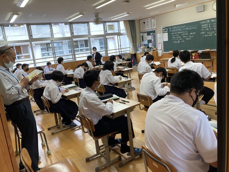 本日の2校時に壹岐教諭が2年生で社会科の研究授業を行いました。本年度、本校では校内研究においてICTの活用に取り組んでいます。今日の授業では北海道の環境と産業についての学習を行いましたが、写真を使って北海道の気候や産業を分かりやすく紹介し理解を深め、まとめの段階ではジャムボードというソフトを使い小グループで北海道の特徴をまとめる作業を行いました。生徒は慣れた手つきでタブレットを操作していました。早く、一人一台のタブレットが配置されると嬉しいです。