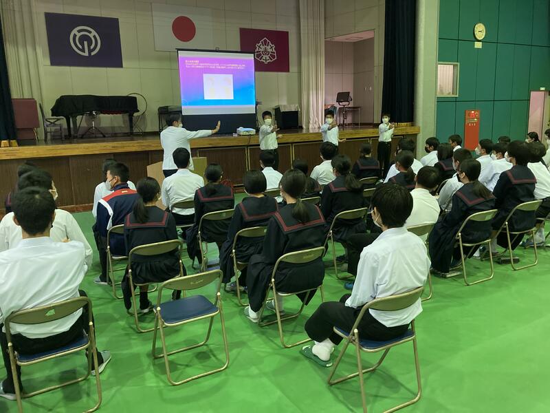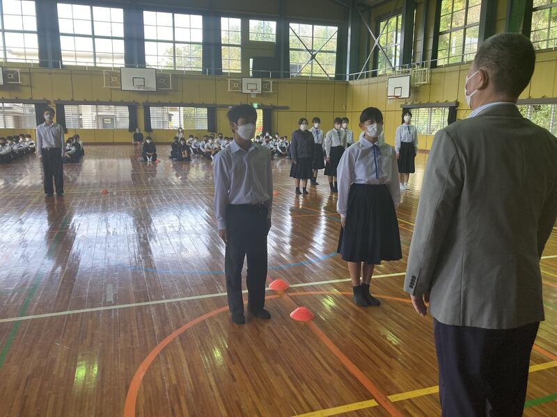 そのあとに校長先生が「1時間1時間の授業を大切にすること」「行事に対して協力して準備をすること」について全体に話をしました。話の最後には、中学校3年生に向けて「自分の進路は自分で決めること」について、確認と激励を行いました。