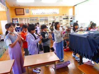 小学部6年生が、調理実習をしました。南方小学校栄養教諭の樋口先生の指導の下、ジャーマンポテトと青菜のおひたし作りに挑戦です。子どもたちは、この調理実習をとても楽しみにしていたようです。始めに、樋口先生から調理のポイントの説明を聞いて、調理に取りかかりました。グループでそれぞれの役割で作業をしながら協力して進めている姿が、とてもよい雰囲気でした。しばらくすると、家庭科室からジャーマンポテトのいい匂いがしてきて行ってみると、ジャーマンポテトと青菜のおひたしが上手に盛り付けされてあり、とてもおいしそうでした。子どもたち、なかなかの腕前です。