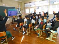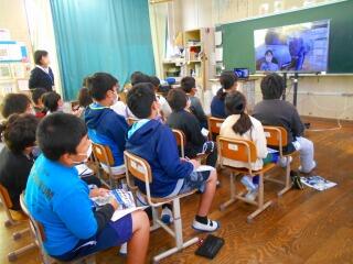 小学5年生の社会科では、自動車工業について学習します。車の製造工程などは、なかなか見学ができないので、オンライン見学会に参加しました。オンライン見学会は、日産自動車九州が行っているものです。教室の大型画面を通して最新の車の製造工程の動画を見たり、説明を聞いたり、クイズで考えたりしながら楽しく学ぶことができました。また、人と環境に優しい車づくりの工夫なども学習することができました。