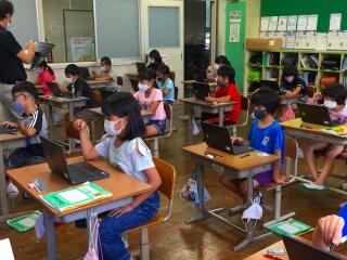 授業でタブレットを使う学習に徐々に取り組んでいます。