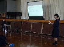 11月26日 朝の時間に生徒集会を行いました。新生徒会役員になって初めての集会でした。