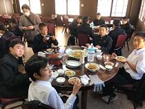 修学旅行1日目の夕食と稲佐山からみた長崎市の夜景見学の様子です。