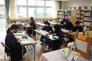 中学生全員が各委員会(学習・生活環境・保体・図書・広報)に分かれ、2月の反省、3・4月の活動計画について協議しました。各委員会委員長・副委員長を中心に、全ての委員会で真剣な話し合いが行われました。