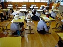 朝の時間にシェイクアウト訓練を実施しました。