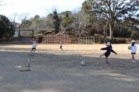 2校時に2年生は、外で元気にサッカーをしました。最初はサッカーボールになれるために、ミニゴールを作り、その中にシュートを決める方法を習いました。慣れてきたら、軽くドリブルをしながらのシュート練習をがんばりましたね。シュートが決まるとガッツボーズをする子どもたちがいました(^o^)