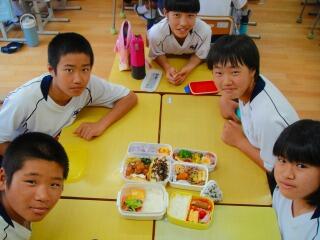 昼食時間、みんなニコニコ顔でおいしそうにお弁当を食べていました。