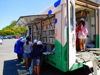 今日は、延岡市立移動図書館の「ふくろう号」が来校しました。