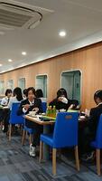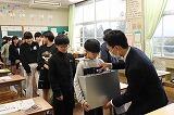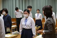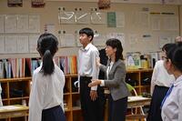 中学部3年生を対象に、みやざき若者サポートステーション・コーディネーターの細川真由美さんが、礼法指導に来られました。講話では、礼の仕方や面接時の目の位置や座り方などについて具体的に分かりやすく説明していただきました。面接に臨む心構えを理解することができました。