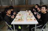 約5時間歩き続け、もうお腹はペコペコです。チキンのマヨネーズ焼き、魚フライ、スパゲッティサラダ、小松菜のおひたし、キノコスープ・・・。どれもほっぺが落ちそうなくらい美味しかったです。一通り食べ終えるとおかわりもする子も続出!!笑顔あふれる夕食の時間でした。