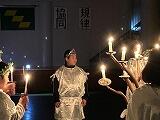 延岡小と上南方小の研修生85名。一緒にキャンドルの集いを行いました。