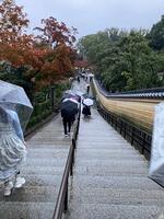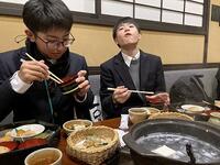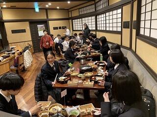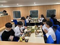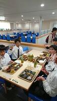 11月21日(木)。感動の中で終わった登山。むかばき青少年自然の家の先生が、登山をしながら、自分達のふるさとにまつわる神話や自然、森の循環などをたくさん教えてくださいました。その話を思いだしながら、下山した後は、環境のために自分達のお昼のお弁当のゴミをみんなで分別しました。その後は、入浴をしすっきりした気持ちで食堂へ。