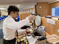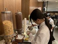 昨日は、17時30分に夕食をとり、ようやく朝食。食堂に行くと、「めっちゃおなかすいてます!!」とにこにこ笑顔で並んでいました。今回もバランスのよい美味しい朝食をいただきました。