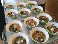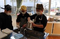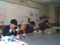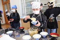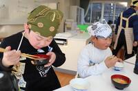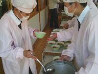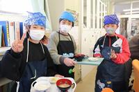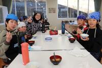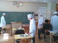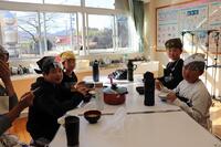 あったかい作りたてのお料理を校長先生や教頭先生方にも持ってきてくれて、ありがとうございました。校長先生が「とってもおいしかったです」と言いに来てくださってみんな嬉しそうでした。自分たちの分もお茶碗によそって、おみそ汁をつぎ分けて完成です!「いただきます」の声で食事がスタートしました。自分たちで作った料理は格別の味でしたね。家に帰ったら、お家のひとにも、ぜひ作ってみましょう。