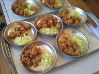 今日の給食の献立は、子どもたちに不動の人気を誇る「唐揚げ」が登場です 給食室から漂う香ばしい匂い