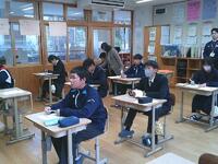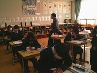中学2年生の朝の時間に、先生から自己推薦入試の倍率についての話がありました。実際の数字を知ることで、入試が決して簡単なものではないことや、日頃の学習や生活の積み重ねが大切であることを改めて考える機会となりました。また、「来年の今頃には、皆さん自身が進路について具体的に考える時期になります」という話もあり、生徒たちは少し先の自分の姿を思い描きながら、真剣な表情で耳を傾けていました