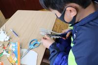 今日は図工の授業で、はさみをたくさん使いました。自分の描きたいものを空き箱や段ボールにデザインをしてから切り抜く作業を行いました。その後に、好きな色を使って、色づけも行いました。一人一人とても集中して、作品作りをがんばっていましたね(^o^)