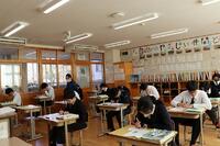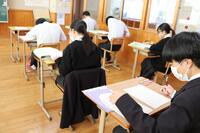 中学3年生は、社会の時間に入試を見据えた実力テストの問題に取り組みました。空気がピンとはっている雰囲気の中、鉛筆の音が聞こえ、社会の先生の解説時には、赤ペンでまちがった箇所をやり直していく姿が見られました。