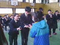 卒業式に向けた全体練習の後、卒業生から中学部の先生方へサプライズがありましたこれまでお世話になった感謝の気持ちを込めて、メッセージと色紙が手渡され、会場は温かな雰囲気に包まれました。さらに、卒業生一人ひとりが在校生に向けて前に立ち、これまでの学校生活を振り返りながら、心のこもったメッセージを語ってくれました