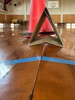 第2体育館では、多目的トイレ整備工事のため、12月末より工事に着工しています。工事に伴い、男子トイレは取り壊しを行い、現在は女子トイレを男女兼用として使用するようにお願いをしておりますまた、体育館の老朽化や立地条件の影響により、雨水が床下にたまりやすい状況があり、そのことが原因の一つと考えられる床の隆起も見られています。体育館入口付近【バスケットゴール下】には、床の隆起が分かるよう赤いコーンを設置しています。安全のため、その周辺の使用はお控えくださいますようお願いいたします