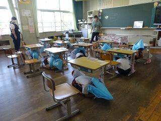 今日は、朝の時間でシェイクアウト訓練を行いました。
