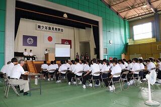 青少年意見発表会では、代表児童生徒が、自分の将来の夢や好きなものの魅力、小中学校の違いなどを発表しました。発表後には、聞いていた児童生徒が質問をしたり、感想を述べたりする場面もあり、とても和やかな雰囲気でした。
