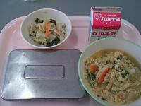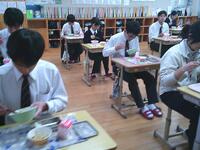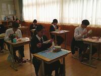 今日の給食の献立は「きつね丼」でした甘辛く煮た油揚げに、たまごのふわふわとした食感が加わり、ごはんが進むやさしい味わいでした。口に運ぶたびにほっとするおいしさで、生徒たちも笑顔で食事を楽しんでいました