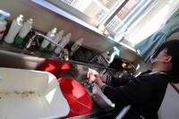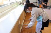 今日は、午前中2時間ずつを使い、小学5,6年生が調理室の中をきれいにていねいに整理整頓しました(^o^)。トップバッターは、5年生。机の上には、棚にあった食器(お皿類)が出ています。分担して、ひとつひとつ洗って、拭き、片づけました。