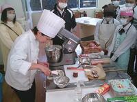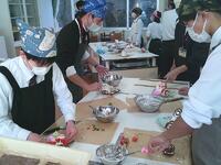 本日、中学2年生は調理実習でクリスマスデコレーションケーキづくりに挑戦しました。今回は、マナビヤ宮崎アカデミーから先生をお招きし、作り方のポイントやプロならではのコツを教えていただきました生クリームの扱い方やデコレーションの工夫など、実演を交えた講話はとても分かりやすく、生徒たちは「なるほど!」とうなずきながら熱心に取り組んでいました。実習が始まると、思い思いの飾り付けを楽しみました
