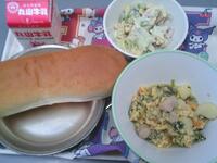 本日の給食は、「洋風卵とじ」と「れんこんサラダ」でしたふんわりとした卵にやさしい味付けの洋風卵とじは、子どもたちにも食べやすく、心も体も温まる一品でした。れんこんサラダは、シャキシャキとした食感が楽しく、野菜のおいしさを感じながら味わっていました。栄養のバランスも考えられた献立で、午後の学習への元気をしっかりチャージできた給食の時間となりました