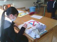 3年生美術の授業では、ピクトグラム作品の最終仕上げに取り組みました。ピクトグラムがはっきりと伝わるよう、背景の色を工夫しながら丁寧に塗り、形や線の細かな部分まで意識して仕上げを行いました一人一人が表現の完成度を高めようと、最後まで集中して取り組む姿が見られました