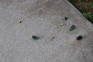 先日、朝登校してみると・・・。2年生が生活科で育てているきゅうりが散乱していました。