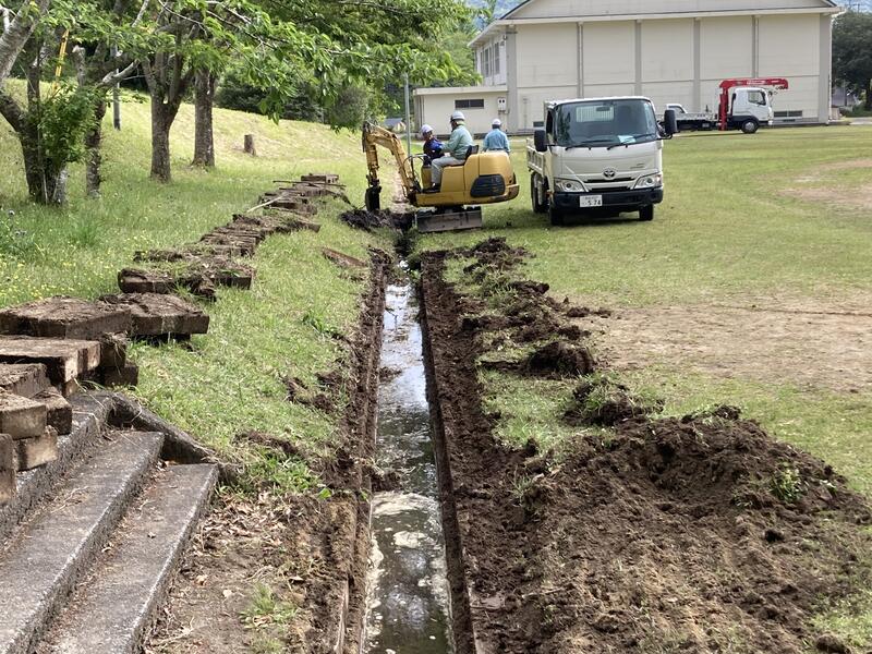 昨年度は延岡市教育委員会からの指示による工事で第2体育館横の通路のぬかるみの改善と第1体育館裏に置かれた昔の備品を片付けていただきました。