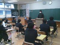 朝の会では、本日は小学校の卒業式が行われるため、来校される方々へのあいさつや礼儀について確認しました。学校を訪れる皆様に気持ちよく過ごしていただけるよう、一人ひとりが意識して行動することの大切さを伝えましたまた、明日は修了式で、今年度最後の登校日となります。一年間の学びや学校生活を振り返りながら、節目を大切にして過ごしていこうと呼びかけました。生徒たちも、いよいよ一年の締めくくりが近づいていることを感じながら、落ち着いて一日をスタートさせていました