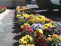 卒業式の花々