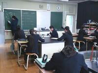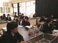 中学1年生の理科では、「地層」の学習に取り組みました。今回の授業では、これまで学んできた地層のでき方や特徴について、問題演習を通して理解を深めましたワークシートの問題を一人で考え、その後、グループで意見を出し合いました。友達の意見を聞くことで、新たな気付きが生まれる場面も多くありました
