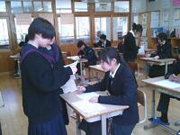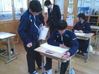 中学2年生の国語では、「用言の活用」の単元テストの解答・解説を行いました「どうして未然形になるの?」「これは連用形じゃない?」と、友だち同士で考えを出し合いながら確認する姿が見られました。“なぜそうなるのか”を説明し合う姿がとても印象的でした